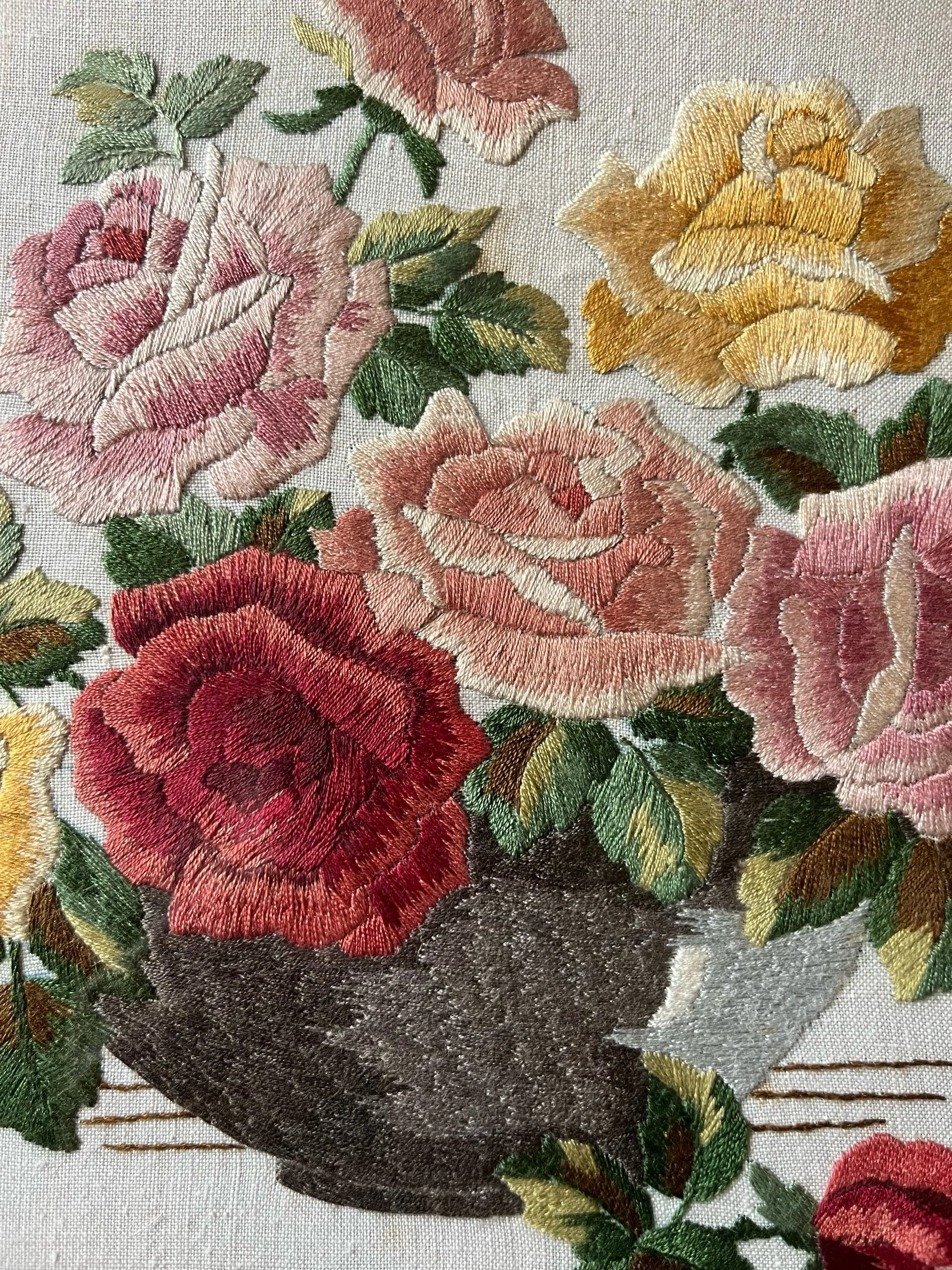 Shop Stuff › Pair of vintage flower embroideries Image 1 of 5 Image 2 of 5 Image 3 of 5 Image 4 of 5 Image 5 of 5 Pair of vintage flower embroideries £85.00 One of a pair of vintage embroideries on linen - framed by Boots when it still did that kind of thing31cm x 29cm Add To Cart Added! One of a pair of vintage embroideries on linen - framed by Boots when it still did that kind of thing31cm x 29cm