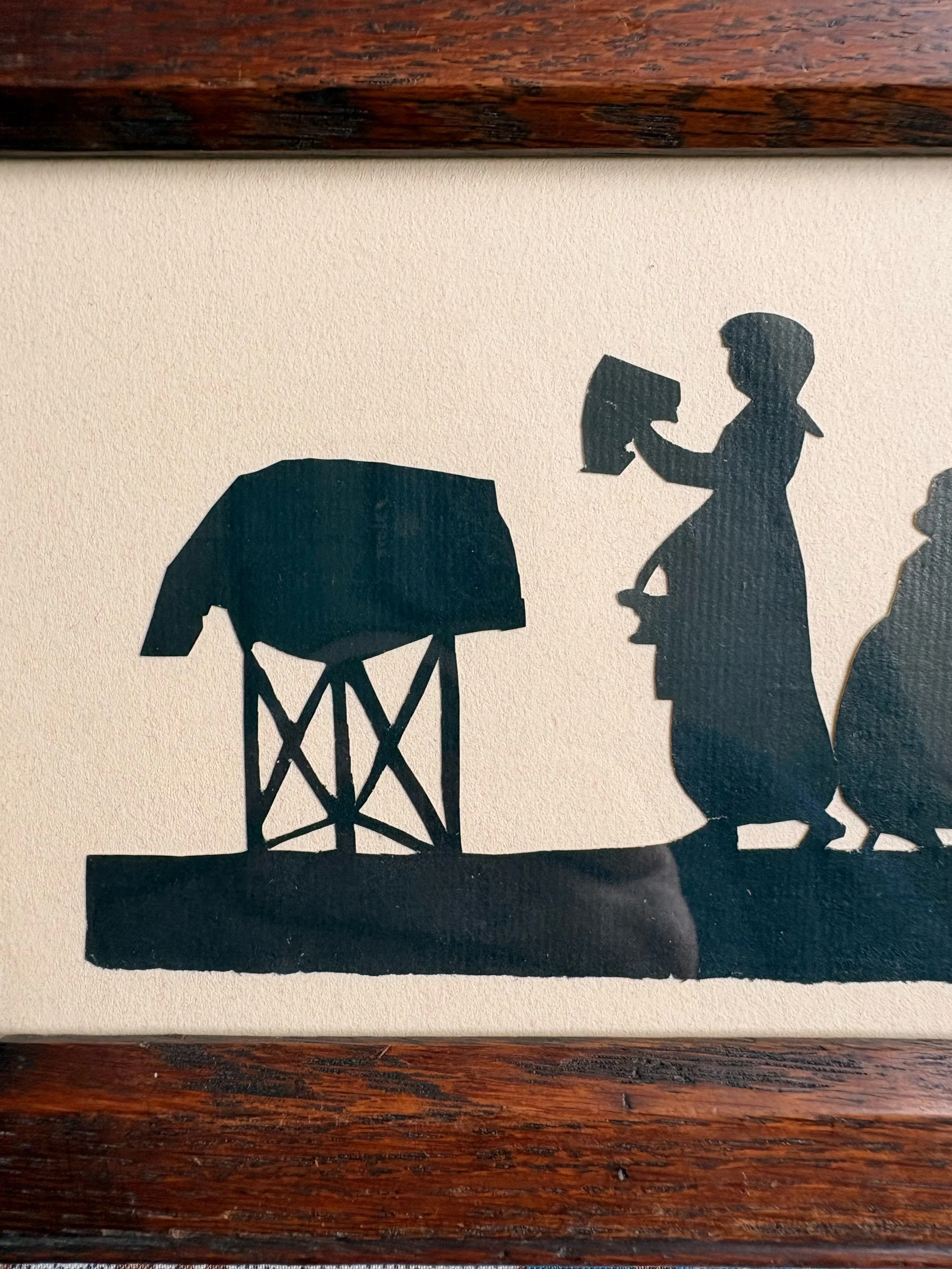 Shop Stuff › Regency silhouette Image 1 of 4 Image 2 of 4 Image 3 of 4 Image 4 of 4 Regency silhouette £65.00 Regency cut-out silhouette of children, probably made by a child, in an antique oak frame14.5 x 20cm Add To Cart Added! Regency cut-out silhouette of children, probably made by a child, in an antique oak frame14.5 x 20cm